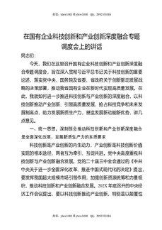 在国有企业科技创新和产业创新深度融合专题调度会上的讲话.docx