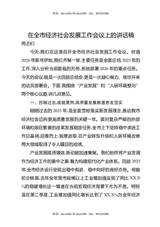 在全市经济社会发展工作会议上的讲话稿.docx