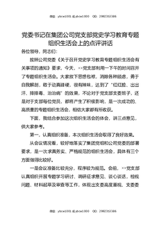 党委书记在集团公司党支部党史XX教育专题组织生活会上的点评讲话.docx