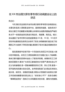 在XX市治理欠薪冬季专项行动调度会议上的讲话.docx