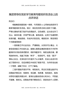 集团领导在党史XX教育专题组织生活会上的点评讲话.docx