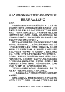 在XX区排水公司关于落实区委巡察反馈问题整改动员大会上的讲话.docx