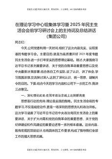 在理论学习中心组集体学习暨2025年民主生活会会前学习研讨会上的主持词及总结讲话(集团公司).docx
