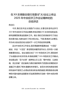在XX农商联合银行党委(扩大)会议上传达2025年中央经济工作会议精神时的总结讲话.docx