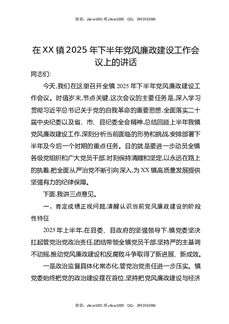 在XX镇2025年下半年党风廉政建设工作会议上的讲话.docx