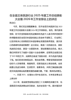 在全县文体旅游行业2025年度工作总结表彰大会暨2026年工作安排会上的讲话.docx