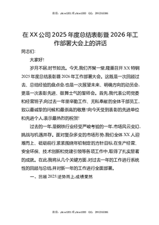 在XX公司2025年度总结表彰暨2026年工作部署大会上的讲话.docx