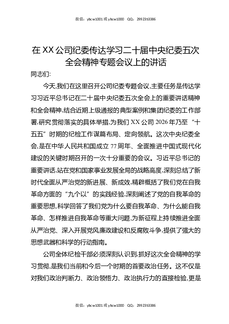 在XX公司纪委传达学习二十届中央纪委五次全会精神专题会议上的讲话.docx