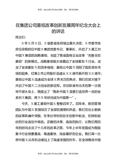 在集团公司重组改革创新发展周年纪念大会上的讲话.docx