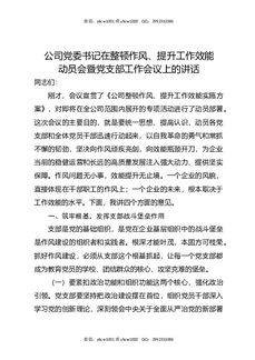 公司党委书记在整顿作风,提升工作效能动员会暨党支部工作会议上的讲话.docx