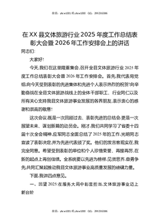 在XX县文体旅游行业2025年度工作总结表彰大会暨2026年工作安排会上的讲话.docx