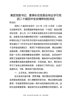 集团党委书记,董事长在党委会传达学习党的二十届四中全会精神时的讲话.docx