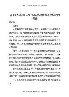 在XX农商银行2026年劳动竞赛动员会上的讲话.docx