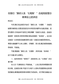 在银行算好人生七笔账合规风险警示教育会上的讲话.docx