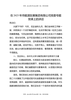 在2025年市能源发展集团有限公司党委专题党课上的讲话.docx