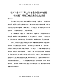 在XX市202X年上半年全市重点产业链“链长制”招商工作推进会上的讲话.docx