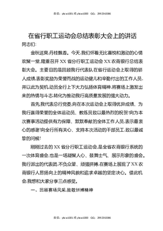 在省行职工运动会总结表彰大会上的讲话(银行).docx
