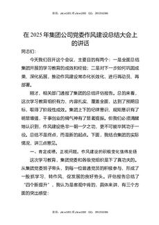 在2025年集团公司党委作风建设总结大会上的讲话.docx