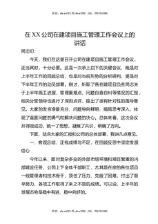 在XX公司在建项目施工管理工作会议上的讲话.docx