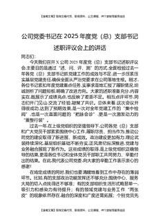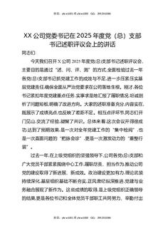 XX公司党委书记在2025年度党(总)支部书记述职评议会上的讲话.docx