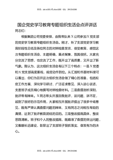国企党史XX教育专题组织生活会点评讲话.docx