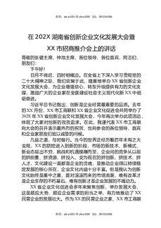 在202X湖南省创新企业文化发展大会暨XX市招商推介会上的讲话.docx