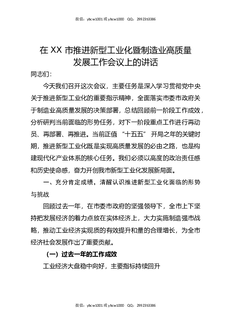 在XX市推进新型工业化暨制造业高质量发展工作会议上的讲话.docx