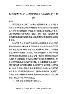 公司党委书记在二季度党建工作部署会上的讲话.docx