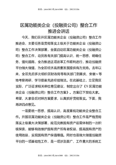 区属功能类企业(投融资公司)整合工作推进会讲话.doc