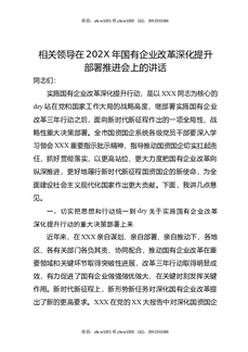 相关领导在202X年国有企业改革深化提升部署推进会上的讲话.docx