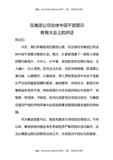 在集团公司全体中层干部警示教育大会上的讲话.docx