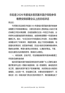 在街道2026年度城乡居民基本医疗保险参保缴费安排部署会议上的总结讲话.docx