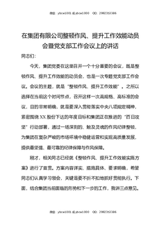 在集团有限公司整顿作风提升工作效能动员会暨党支部工作会议上的讲话.docx
