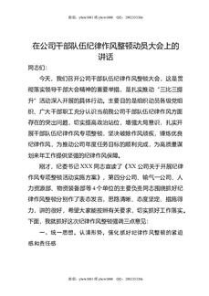 在公司干部队伍纪律作风整顿动员大会上的讲话.docx