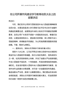 在公司开展作风建设XX教育动员大会上的部署讲话.docx