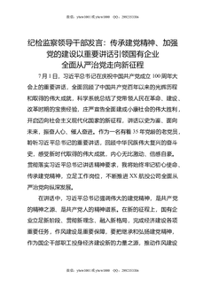 纪检监察领导干部发言:传承建党精神,加强党的建设,以重要讲话引领国有企业全面从严治党走向新征程.docx