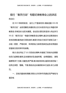 银行春天行动专题纪律教育会上的讲话.docx