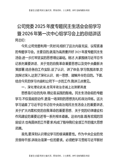 公司党委2025年度专题民主生活会会前学习暨2026年第一次中心组学习会上的总结讲话.docx