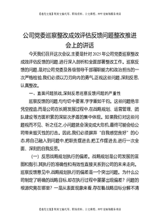 公司党委巡察整改成效评估反馈问题整改推进会上的讲话.docx