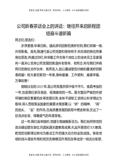 公司新春茶话会上的讲话:继往开来启新程团结奋斗谱新篇.docx