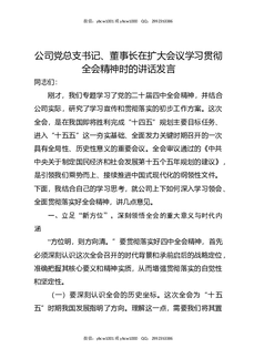 公司党总支书记,董事长在扩大会议学习贯彻全会精神时的讲话发言.docx