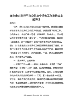 在全市农商行不良贷款集中清收工作推进会上的讲话.docx