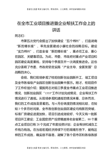 在全市工业项目推进暨企业帮扶工作会上的讲话.doc