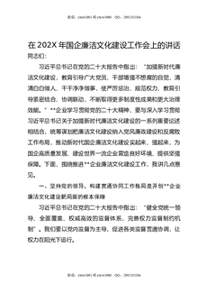 在202X年国企廉洁文化建设工作会上的讲话.docx