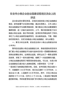 在全市小微企业创业园建设现场交流会上的讲话.doc