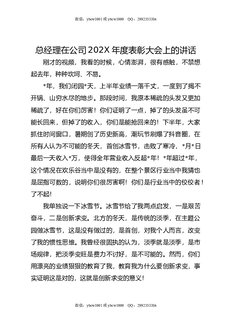 总经理在公司202X年度表彰大会上的讲话.docx