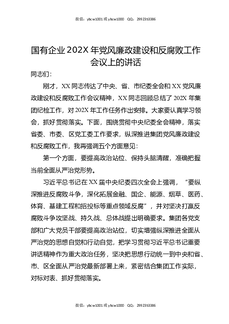 国有企业202X年党风廉政建设和反腐败工作会议上的讲话.docx