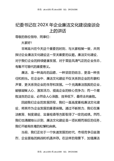 纪委书记在202X年企业廉洁文化建设座谈会上的讲话.docx