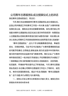 公司青年志愿服务队成立授旗仪式上的讲话.docx