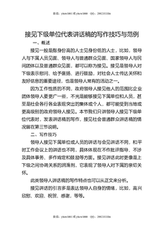 接见下级单位代表讲话稿的写作技巧与范例.docx